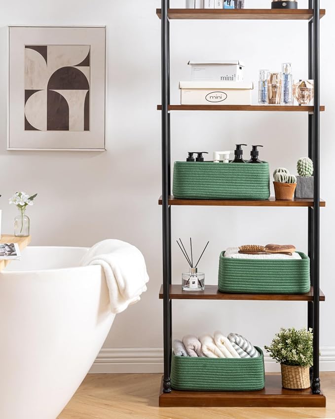 - [ Elegantly Designed to Match Any Décor ] Our small rope basket creates a minimalist appearance, and it adds a touch of warmth and texture to any room. The classic solid color design ensures seamless integration with your existing aesthetics, complementing any decoration. Perfect as decorative storage baskets for shelves, cabinets, and any open display space, making them a stylish and practical addition to any decor, enhancing the overall aesthetics of your room