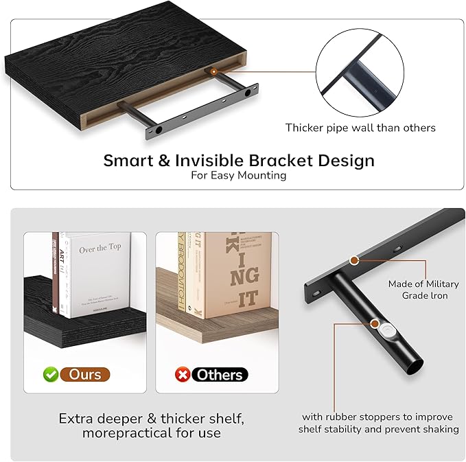 - Easy to Assemble & Install: Each shelf comes with everything you need for quick and easy assembly: durable steel invisible brackets, toggle bolts for drywall, and a straightforward instruction manual. With just one or two boards and a few screws, you can have the shelf up in no time. The included step-by-step instructions make the installation process hassle-free, and our customer support team is always available if you need assistance.