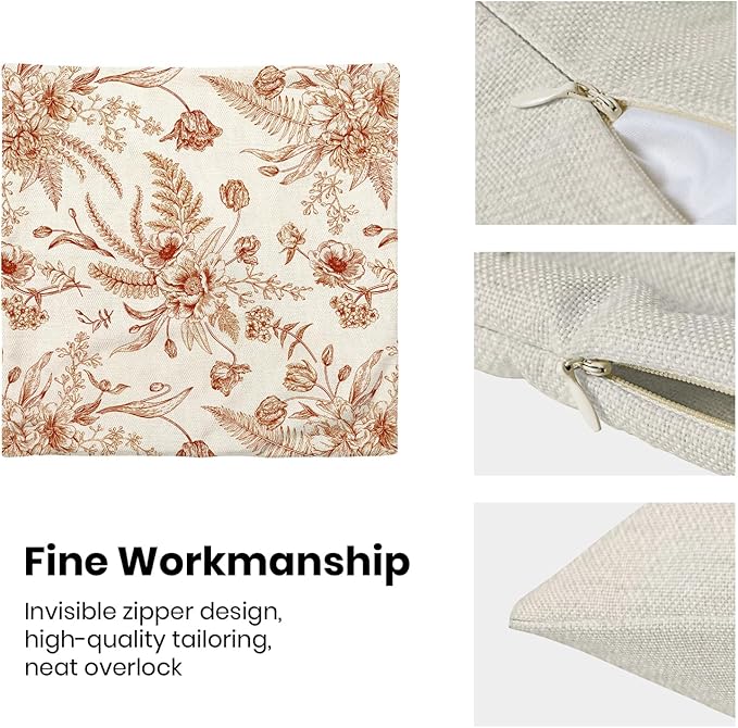 - 【Spring Pillow Covers】 Our Chinoiserie floral throw pillow covers 18x18 inch are made of excellent breathable polyester cotton fabric. The orange and White floral decorative pillow covers is sturdy, soft and skin-friendly. The plant outdoor pillow covers adopt exquisite edging technology and four sides of our floral pillow covers are sewn firmly, which is not easy to open the line.