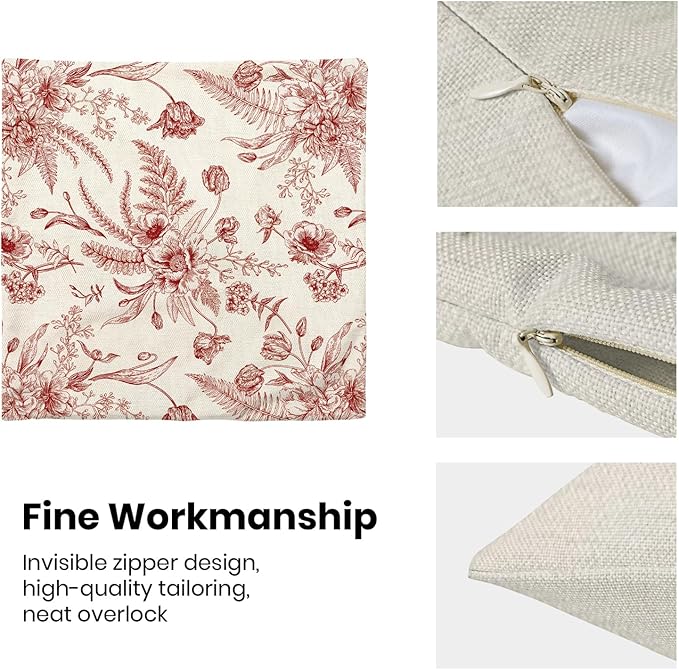 - 【Spring Pillow Covers】 Our Chinoiserie floral throw pillow covers 18x18 inch are made of excellent breathable polyester cotton fabric. The red and White floral decorative pillow covers is sturdy, soft and skin-friendly. The plant outdoor pillow covers adopt exquisite edging technology and four sides of our floral pillow covers are sewn firmly, which is not easy to open the line.