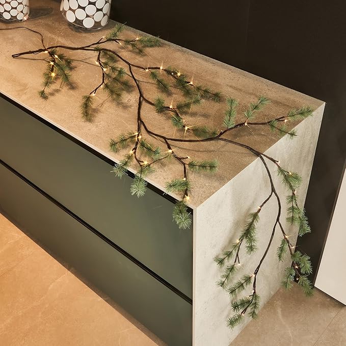 - 【HEAVENLY LIGHTS】: Up to 48 warm white micro LED bulbs nestled on the Pine garland cast a subtle glow that adds warmth to your home and Christmas holiday decor