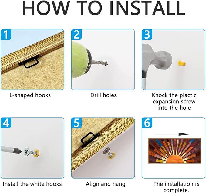 - 【Size for Easy Displaying】This boho sun artwork wall decor 3d wood sun wall art decor sunshine wall art is about 20*40 inches (50*100 cm). Two hooks are installed on the back of the minimalist wood wall decor, and the box package is equipped with screws. So you can easily hang the mid century modren wood wall art, very easy to operate.