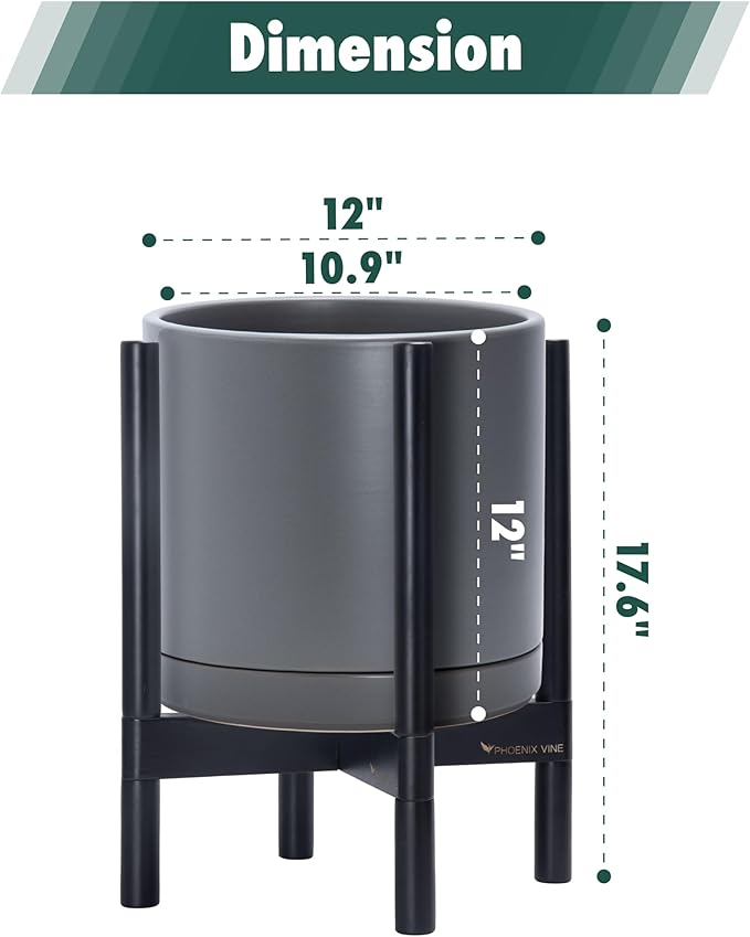 - 12 Inch Pot with Stand Set: Planter size: 11.8"Diameter x 11.8"H; pot with stand total height: 18.5 inch.