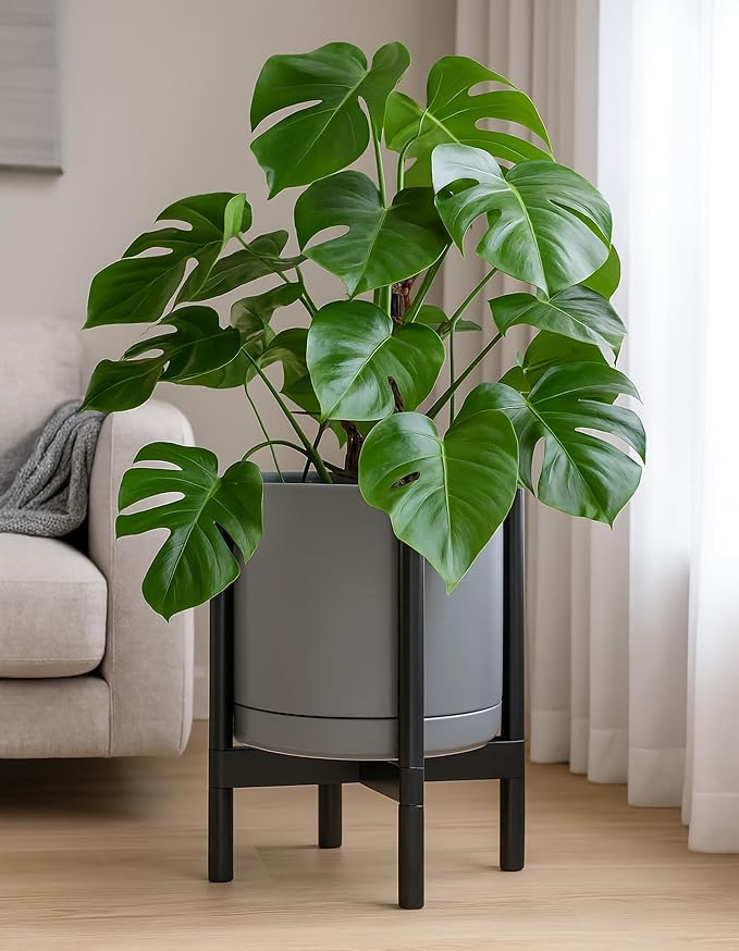 - A Complete Set: Mid-century ceramic planter, combined with a ebony wood stand that match perfectly together and looks great in anywhere.