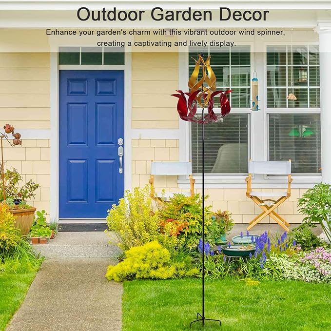 - 🎁【THOUGHTFUL GIFT FOR GARDEN LOVERS】Delight family, friends, and neighbors with a meaningful gift that combines beauty and function. Perfect for birthdays, housewarmings, or holidays, this large tulip outdoor wind spinner is a timeless way to share the joy of nature and creativity with those you love. Bring pleasure and festive vibes to any outdside space.