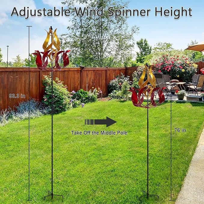 - 🏡【VERSATILE DECOR FOR ANY OUTDOOR SPACE】Whether you're creating a focal point in your garden, adding a whimsical touch to your yard, or complementing your patio’s design, this large tulip wind spinner is the perfect addition. Its timeless design blends seamlessly into any setting, offering a relaxing visual experience that soothes the soul and sparks joy.