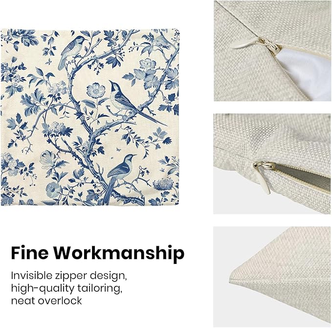 - 【Square Pillow Covers Size】 Chinoiserie flower birds pillow case set includes 2 pcs of farmhouse couch pillow covers (NO Pillow). Home decor farmhouse pillow covers measures 18x18 inch/ 45x45 cm. All the floral decor throw pillow covers have a hidden zipper. It is easy to insert or remove the pillow core to replace the spring pillowcase. Easy to clean and wash, sturdy and not easy to damage.