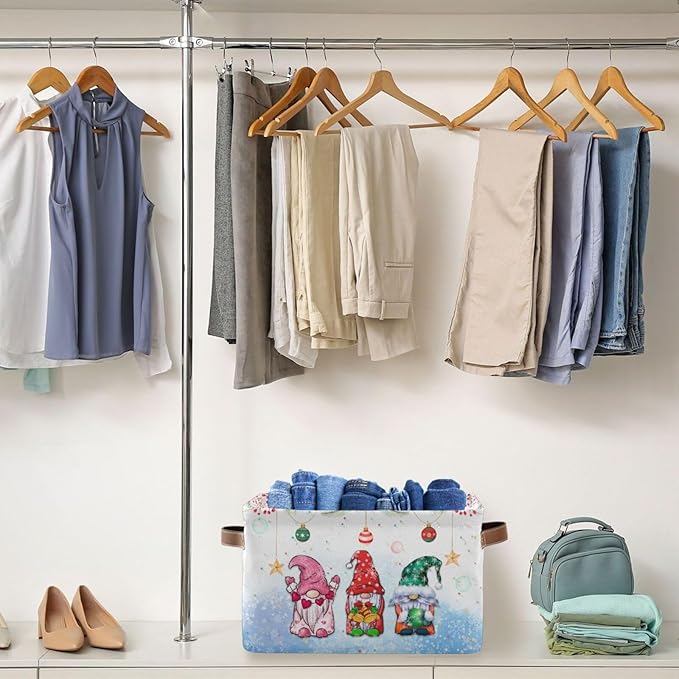 Storage Basket Gnomes Christmas Cube Storage Bins Organizer Bag Collapsible Closet Shelf Baskets with handle for Baby Cloth Pet Toy Book 14.2×10.2×8.3 IN