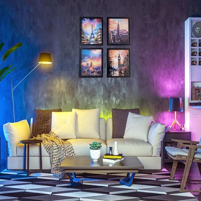 Boho Wall Art Decor,New York, London, Tokyo, Paris, Eiffel Tower,City Wall Decor Art,Modern Landscape Wall Art for Living Room Bedroom Prints Poster,8x10 Inch Set of 4,Framed