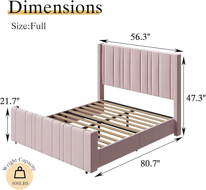 - Sturdy and Cozy: With the solid construction, the pink full bed frame enhances safety and comfort. The upholstered headboard provides excellent support for relaxing and sleeping. Kids and pets friendly, beautiful and soft to the touch