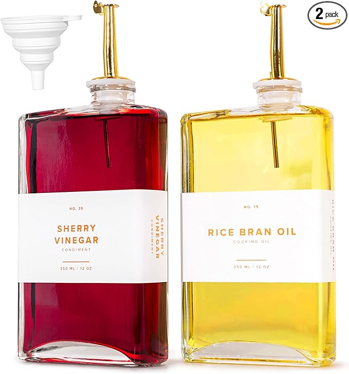 - CONTROLLED POUR, NO DRIPS: Featuring precision oil bottle pour spouts, our cooking oil dispensers allow for smooth, mess-free pouring with an air-tight seal to prevent spills and leaks.