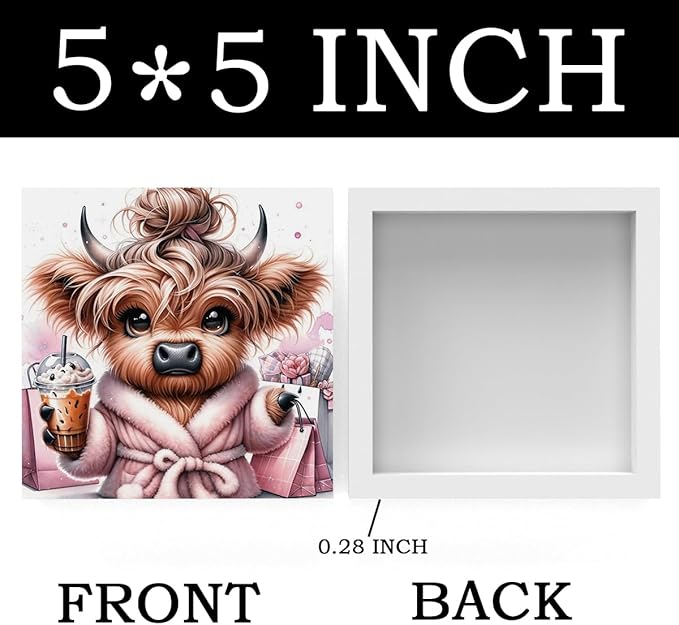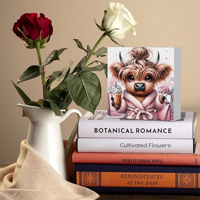 Highland Cow Winter Decor, Highland Cow Gifts for women, Highland Cow Baby Decor, Highland Cow Nursery Decor, Wooden Box Decor Sign for Home Farmhouse Office Living Room Table Shelf Tiered
