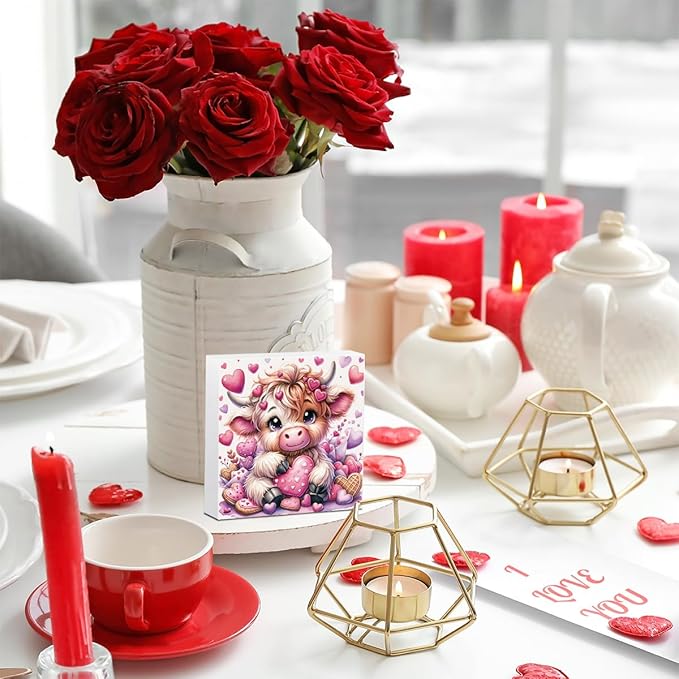Valentines Day Decor Valentines Day Decorations Valentines Day Office Decor Valentines Day Table Decor Pink Valentines Day Decorations Valentines Decor Gifts for Girlfriend, Highland Cow Wooden Decor