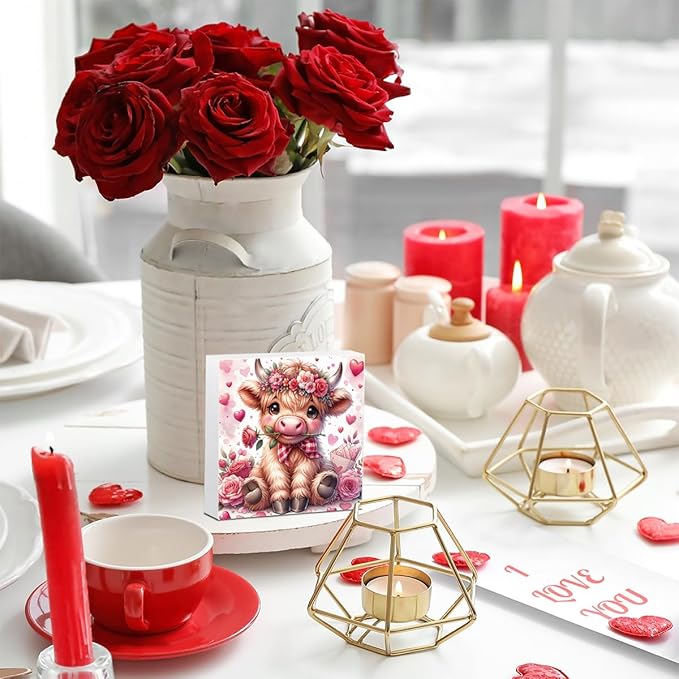 Valentines Day Decor Valentines Day Decorations Valentines Day Office Decor Valentines Day Table Decor Pink Valentines Day Decorations Highland Cow Gifts for Boyfriend Girlfriend, Wooden Decor Sign