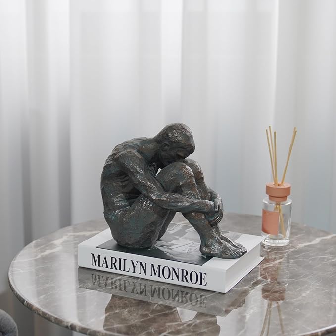 - BOOKSHELF DECORATIVE OBJECTS: Abstract modern sitting man statue made of resin, strong structure and high quality, professional casting, meticulous, no odour.