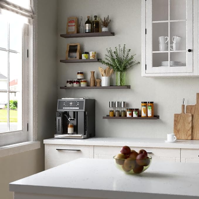 - Wide Application - These wooden floating shelves creates multi-functional storage space and various combinations to decorate your home. It can be spice racks to expand kitchen storage or bathroom shelves to add over-the-toilet-storage space for bathroom accessories or display shelves to show your plants, records, magazines, and trophy in the living room.
