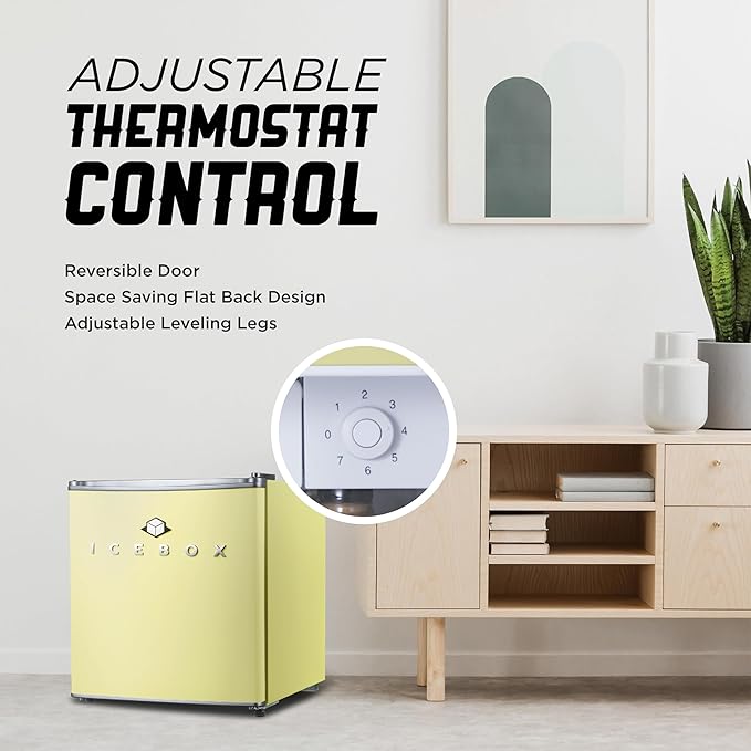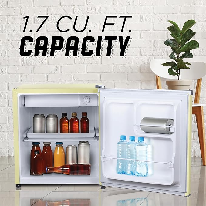 IBCR17SUN Compact, Energy Star Certified Small, Single Door Mini Fridge with Freezer Refrigerator, Standard (1.7 cu ft), Sun Yellow
