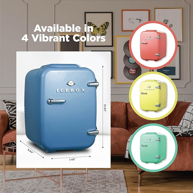 - Retro Fridge Design: This mini fridge for office and bedroom features a colorful retro mini fridge design that looks good on any desktop or tabletop. Available in 4 unique colors