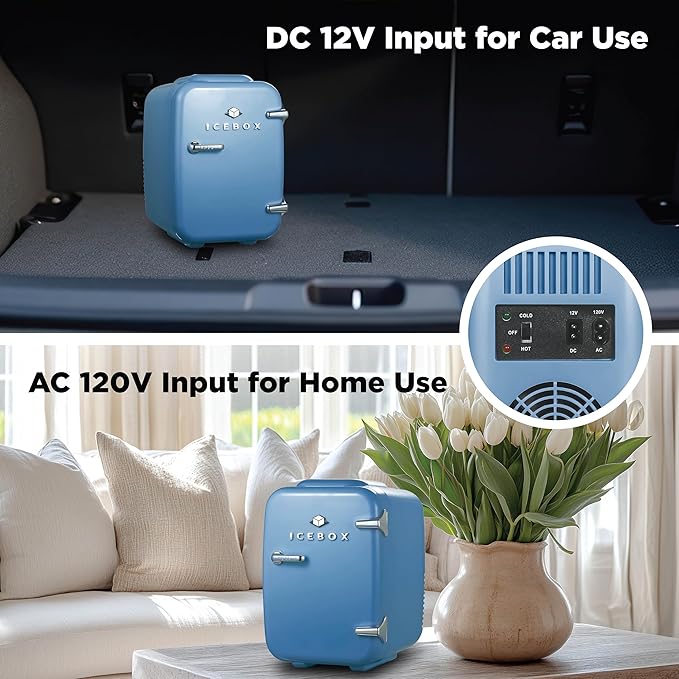- Versatile Use and Portability: This mini skincare fridge comes with both 120V AC and 12V DC adapters for use at home, in the office or vehicle. Perfect to take on the go for any long haul truck or RV
