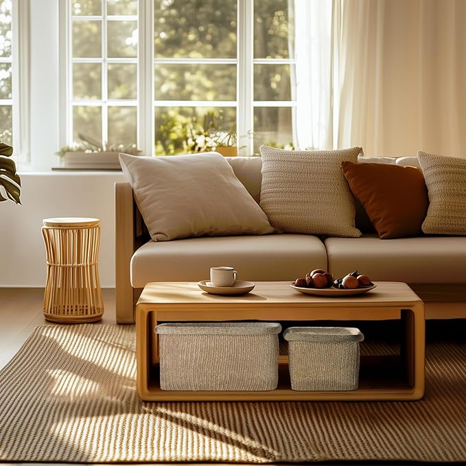 - UNIQUELY CHIC & DELUXE: These fully-knitted masterpieces blend innovative techniques with timeless artistry. The refined yarns and high-tech coating offer a divinely soft, sturdy texture that holds its shape beautifully. Designed for entryways, shelves, and countertops, these stackable baskets provide effortless organization with a modern, elegant touch