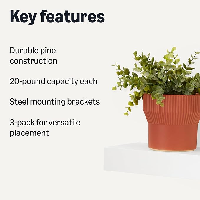 - Floating wall shelf (3-pack) offers extra storage and display space