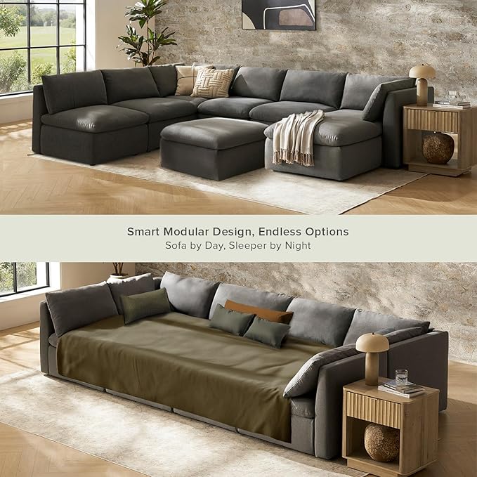 mopio Oversized Modular Sectional Sofa with Fully Removable Covers and Storage, Convertible U, L-Shaped and Sleeper Sectional, Modern Couches with Ottoman Chaise (Stone Gray Fabric, 9 Seats, Sleeper)