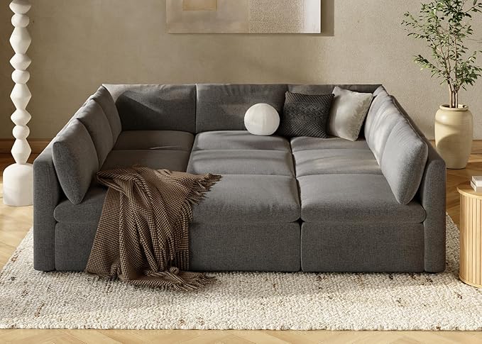 - Modular & Customizable for Every Moment: Whether life calls for intimate conversations or a full house, the modular sectional sofa adapts. Rearrange or expand your layout with ease, making it the perfect companion to grow and change with your needs. Whether you want a cozy L-shaped couch, an expansive U-shaped setup, or a laid-back pit-sectional, the choice is yours