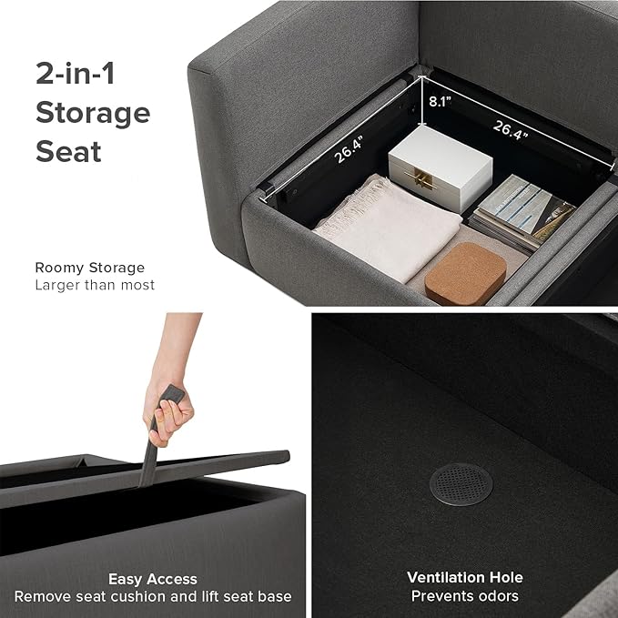 - Ample Hidden Storage for a Tidy Home: Keep your living room clutter-free with generous built-in storage beneath the seats. It’s perfect for stashing blankets, pillows, or other everyday items, ensuring everything you need is always within reach—while staying out of sight