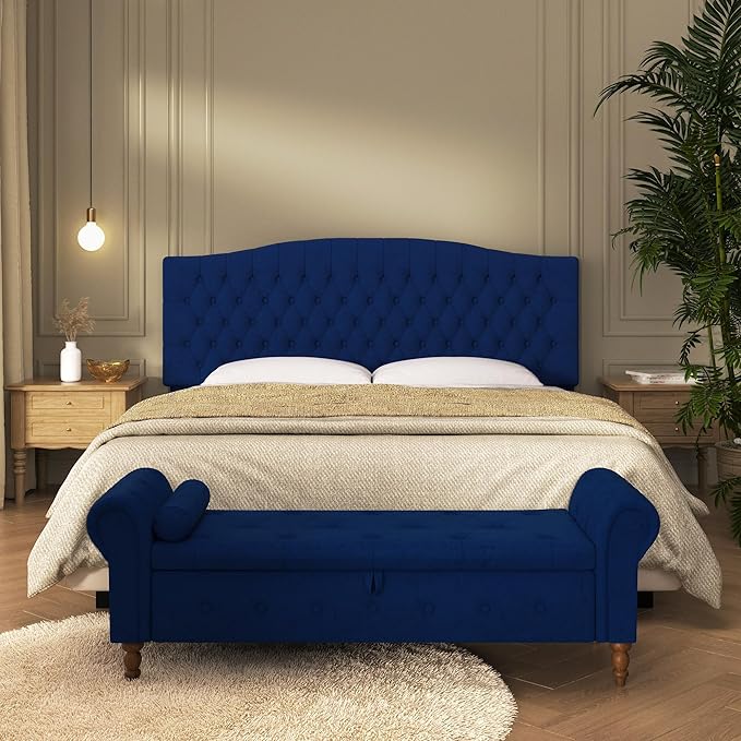 - MODERN DESIGN: The padded headboard uses a classic tufted button design for a beautifully minimalist look. Elegant modern curved design is more luxurious. Redefine your bedroom style without having to buy a new bed frame
