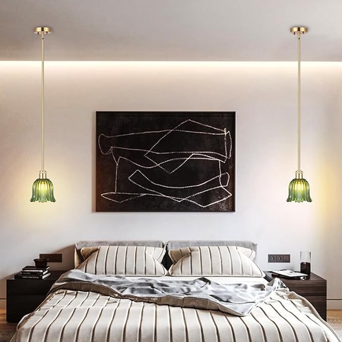 - 【Green Tone Pendant Light】Using classic thickened green glass material lampshades, which provide excellent light transmission to illuminate various spaces in your home,not only brings a touch of vitality and energy to the indoor space,but also creates a nostalgic and retro atmosphere,Perfect for mid-century decoration styles and combines the contemporary and vintage style.