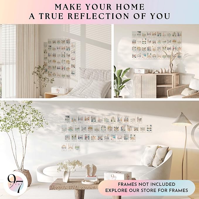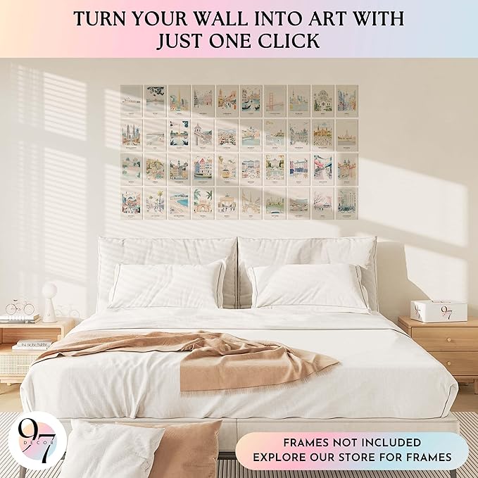 - COMPLETE TRAVEL ART PRINTS SET: Your purchase includes a set of 40 4x6" posters, each showcasing a unique travel destination. Create a captivating travel pictures for wall that captures the essence of your decor
