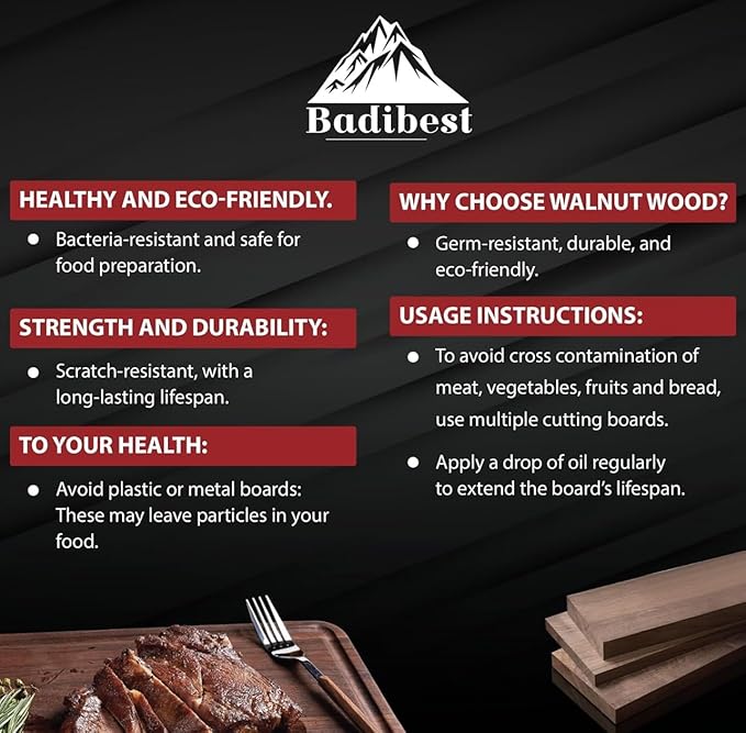 - ใ๐ ๐จ๐จ๐-๐๐๐๐ & ๐๐๐จ-๐ ๐ซ๐ข๐๐ง๐๐ฅ๐ฒ โ ๐๐๐ญ๐ฎ๐ซ๐๐ฅ๐ฅ๐ฒ ๐๐จ๐ง ๐๐จ๐ฑ๐ข๐ใ: Finished with 100% food-grade mineral oil and free from harmful chemicals, our cutting boards non toxic are safe for all food types. Sustainably sourced walnut and eco-conscious craftsmanship make our wood cutting boards for kitchen a smart, healthy choice for any kitchen.
