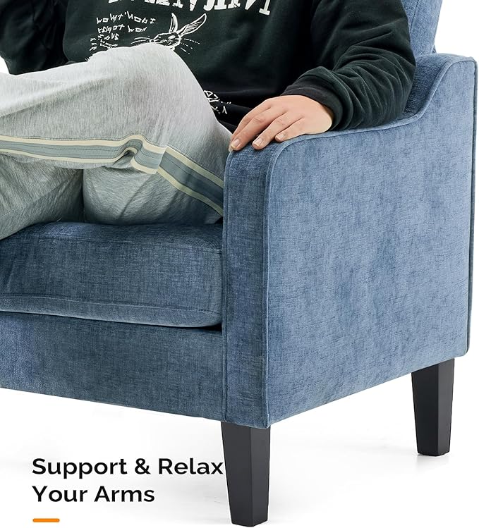- Stability and Durability—This living room chair is made with fluffy chenille fabric, resilient foam cushions with steel springs, a sturdy metal backrest, and solid wood legs. With a weight limit of 380 lbs, it ensures exceptional stability and comfort