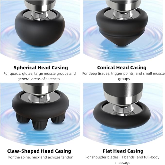 - 【Professional Grade Massager】Tailor a massage experience for various areas of muscle soreness with 4 intensity levels & 4 specialized silicone head casings. A claw-shaped head casing with 4 nodes, reaching deep into muscles for instant relief.