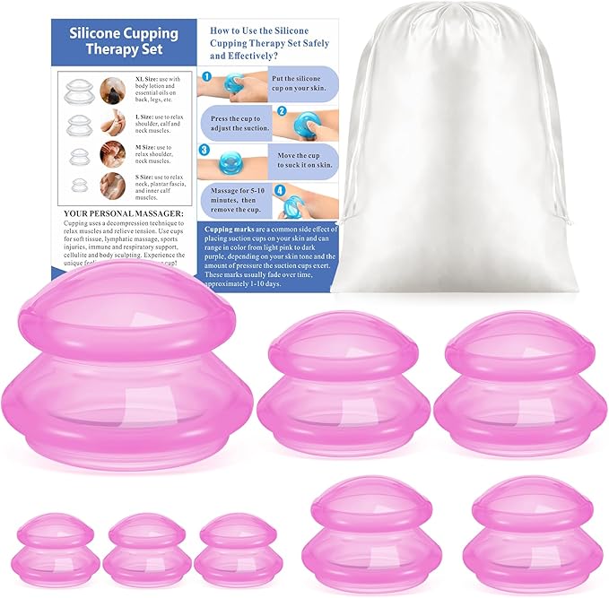 - Portable for Use: avoid letting travel interfere with your regular rest routine; Because of its small size, our silicone cupping set can travel with you. Whether you're traveling or at home, let go of any tense muscles; Additionally, because of its small size, it may be applied with a variety of skincare or detox treatments