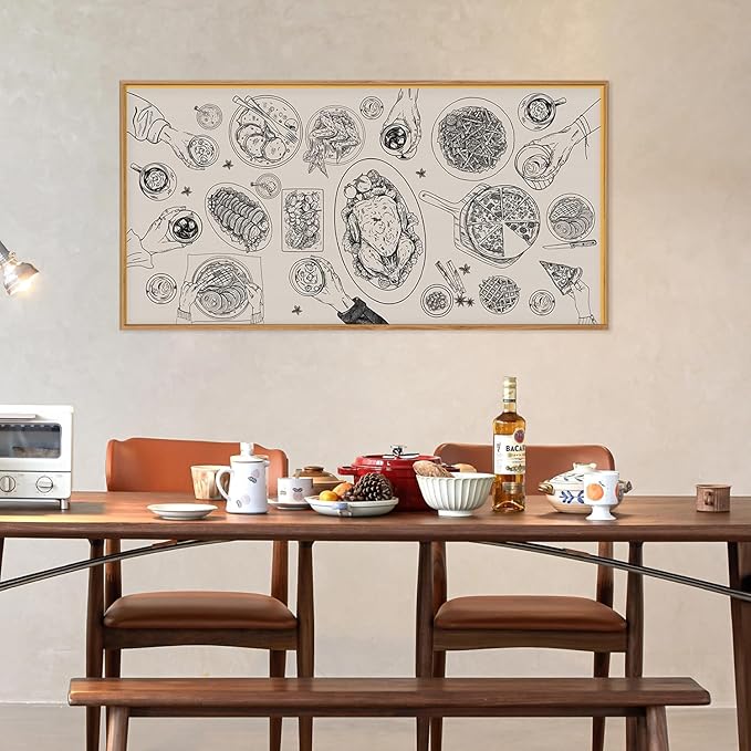 - 【Thanksgiving Reunion Wall Art】The decorative paintings feature reunion atmosphere design with food and drink as the primary tones. They skillfully integrate elements of steak, drinks, and pizza to create a gatherings aesthetic.