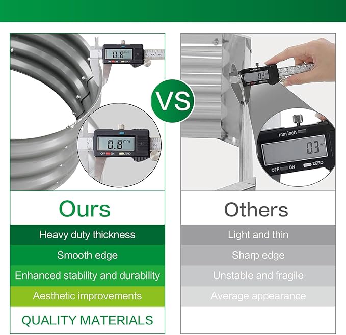 - DURABLE GALVANIZED MATERIAL: GARDMAX outdoor raised garden beds are made from 0.8mm heavy-duty galvanized material, ensuring exceptional longevity and durability. It is more resistant to high temperatures and freezes, making it very suitable for outdoor use. And this metal will survive the elements for decades, but when you're ready to replace it, the metal is entirely recyclable