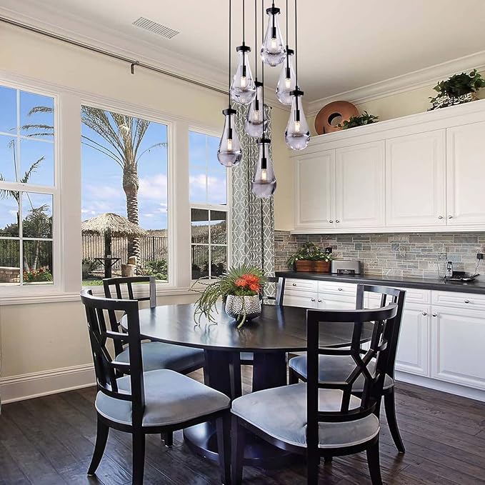 - 【Provide 2-Year Service】Black 7-light raindrop chandeliers for your kitchen island, bathroom, bedroom, foyer, hallway, staircase. Ideal chandelier for dining room, kitchen chandeliers over table, hanging pendant light, island pendant lights for kitchen.