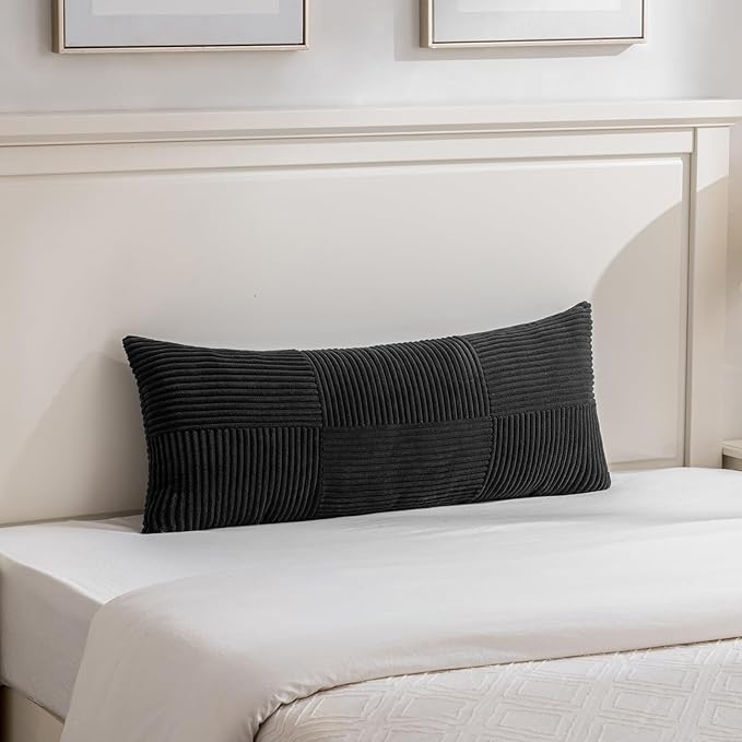 Fancy Homi Set of 2 Black Boho Long Lumbar Body Decorative Throw Pillow Cover 14x36 Inch for Bed Couch Bedroom Bench, Soft Patchwork Corduroy Textured Pillow Case, Rustic Farmhouse Room Décor