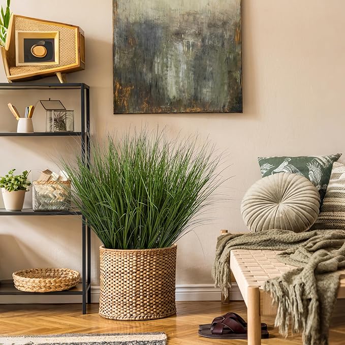 - VERSATILE DECORATION USES: The artificial wheat grass offers endless possibilities for decoration. It can be paired with other artificial plants to create a diverse greenery arrangement indoor, adding a pop of freshness to any room. For Outdoor use, it can be used to line walkways, fill flower beds, or enhance the edges of a garden. It's also a great choice for artificial grass plant projects, such as creating a miniature landscape. Its versatility makes it suitable for various home decoration.