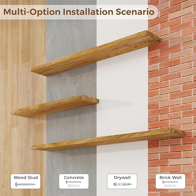 - Easy to Install: Complete with all necessary hardware and a detailed installation guide, these wood hanging shelves can be easily installed in just five minutes, making it simple to add a touch of natural beauty to any room in your home