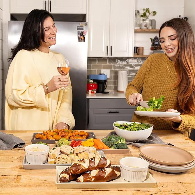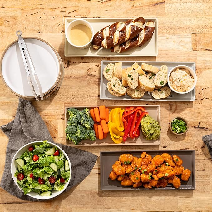 - Durable Rectangle Plates - Each serving dish is made with a thick, highly durable ceramic material to prevent them from cracking or breaking; The appetizer serving trays also feature a lip