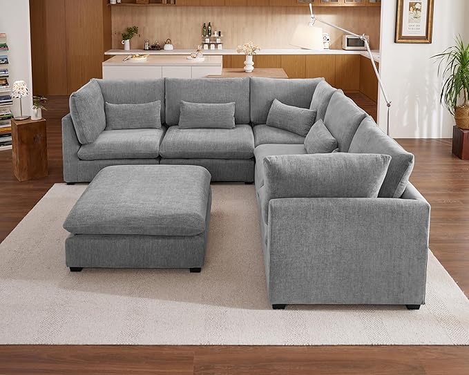 - 【Tool-Free Assembly in Minutes】Assemble your sofa in no time—no tools required! The modular design allows for quick and easy setup using high-quality U-shaped stainless steel connectors, ensuring a secure fit between each module. Reconfigure your sectional effortlessly and enjoy it in as little as 20 minutes. Perfect for those who value convenience and flexibility, this sectional offers a seamless assembly experience and provides total comfort from the moment it arrives
