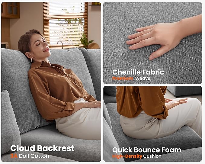 - 【Durable and Long-Lasting Construction】Say goodbye to flimsy furniture—CHIC HOUSE’s sectional is built to last with a strong hardwood frame and high-density foam cushions that provide both support and comfort. Perfect for families, pet owners, and anyone who needs that handle daily wear and tear, this modular withstands constant use while retaining its shape. Enjoy peace of mind knowing your sofa will stay sturdy, supportive, and comfort, whether you’re lounging, working, or entertaining guests
