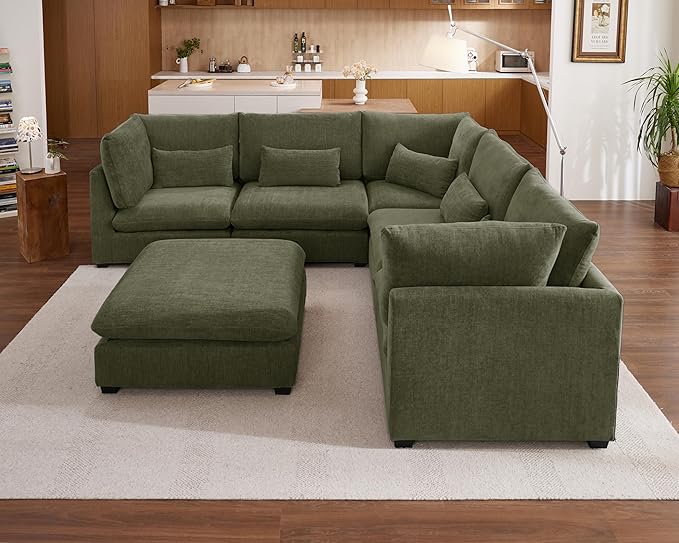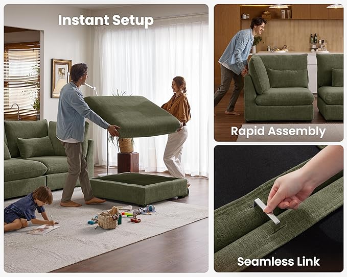 - 【Tool-Free Assembly in Minutes】Assemble your sofa in no time—no tools required! The modular design allows for quick and easy setup using high-quality U-shaped stainless steel connectors, ensuring a secure fit between each module. Reconfigure your sectional effortlessly and enjoy it in as little as 20 minutes. Perfect for those who value convenience and flexibility, this sectional offers a seamless assembly experience and provides total comfort from the moment it arrives