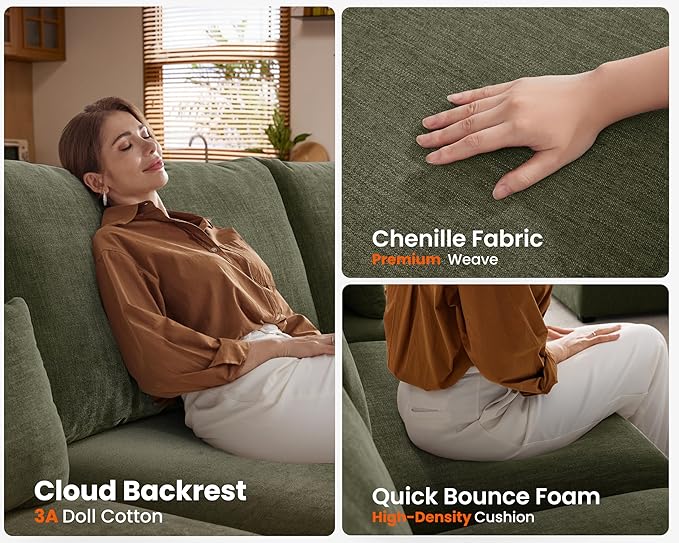 - 【Durable and Long-Lasting Construction】Say goodbye to flimsy furniture—CHIC HOUSE’s sectional is built to last with a strong hardwood frame and high-density foam cushions that provide both support and comfort. Perfect for families, pet owners, and anyone who needs that handle daily wear and tear, this modular withstands constant use while retaining its shape. Enjoy peace of mind knowing your sofa will stay sturdy, supportive, and comfort, whether you’re lounging, working, or entertaining guests