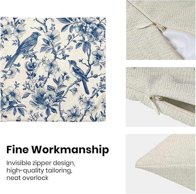 - 【Spring Pillow Covers】 Our Chinoiserie floral throw pillow covers 18x18 inch are made of excellent breathable polyester cotton fabric. The floral decorative pillow covers is sturdy, soft and skin-friendly. The outdoor pillow covers adopt exquisite edging technology and four sides of our floral pillow covers are sewn firmly, which is not easy to open the line.
