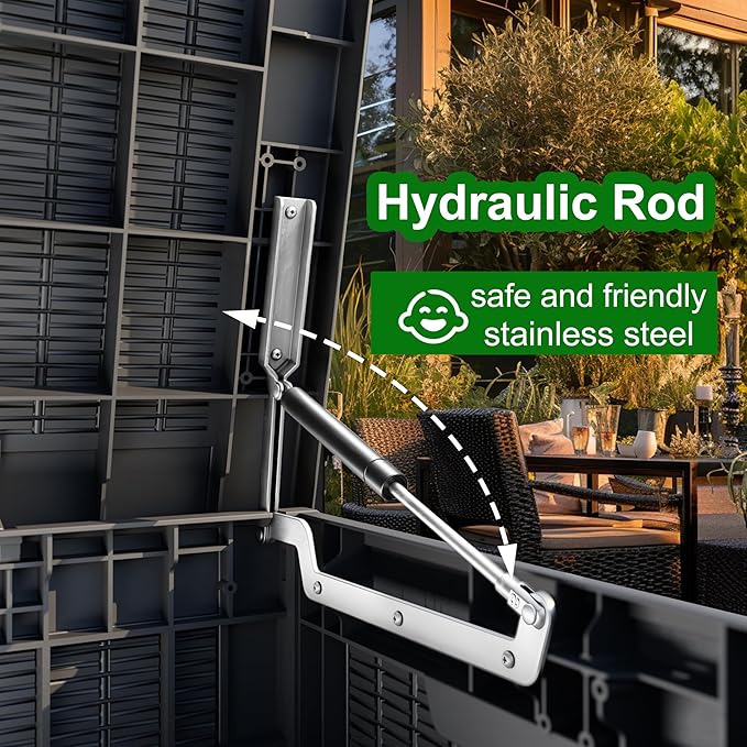 - EASY TO USE: The deck storage box is designed for convenience with built-in handles on both sides, allowing easy lifting and movement. Plus, for added security, you can install a password lock/small lock (not included) on the top cover