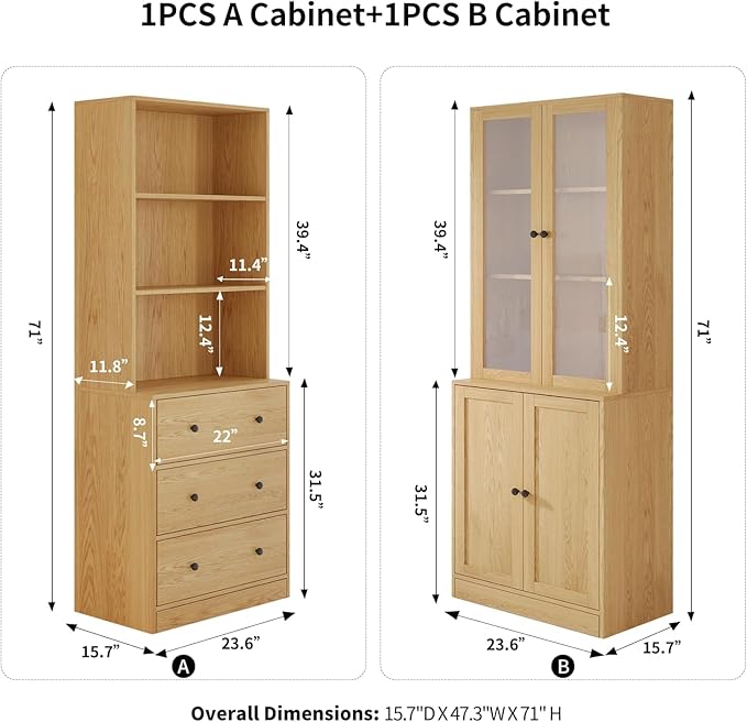 - DIY Your Cabinets: Customize your storage space with 3 drawers, 3 open shelves, 2 hidden shelves, and 3 shelves with glass doors. Perfect for bookcases, kitchen shelves, and display cabinets.