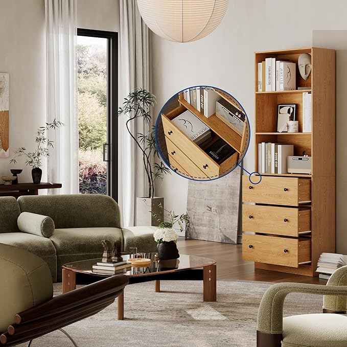 - 【Enhanced Organization & Tidiness】- The multi-layer design of this modern bookshelf is ideal for organizing your home or office. Keep books, office supplies, and documents organized and easy to access. The open shelves are perfect for displaying decorative items, while the drawers are ideal for storing files, stationery, or smaller household goods. Easily organize your space and access frequently-used items while keeping others neatly hidden, giving your room a more polished and cohesive look.